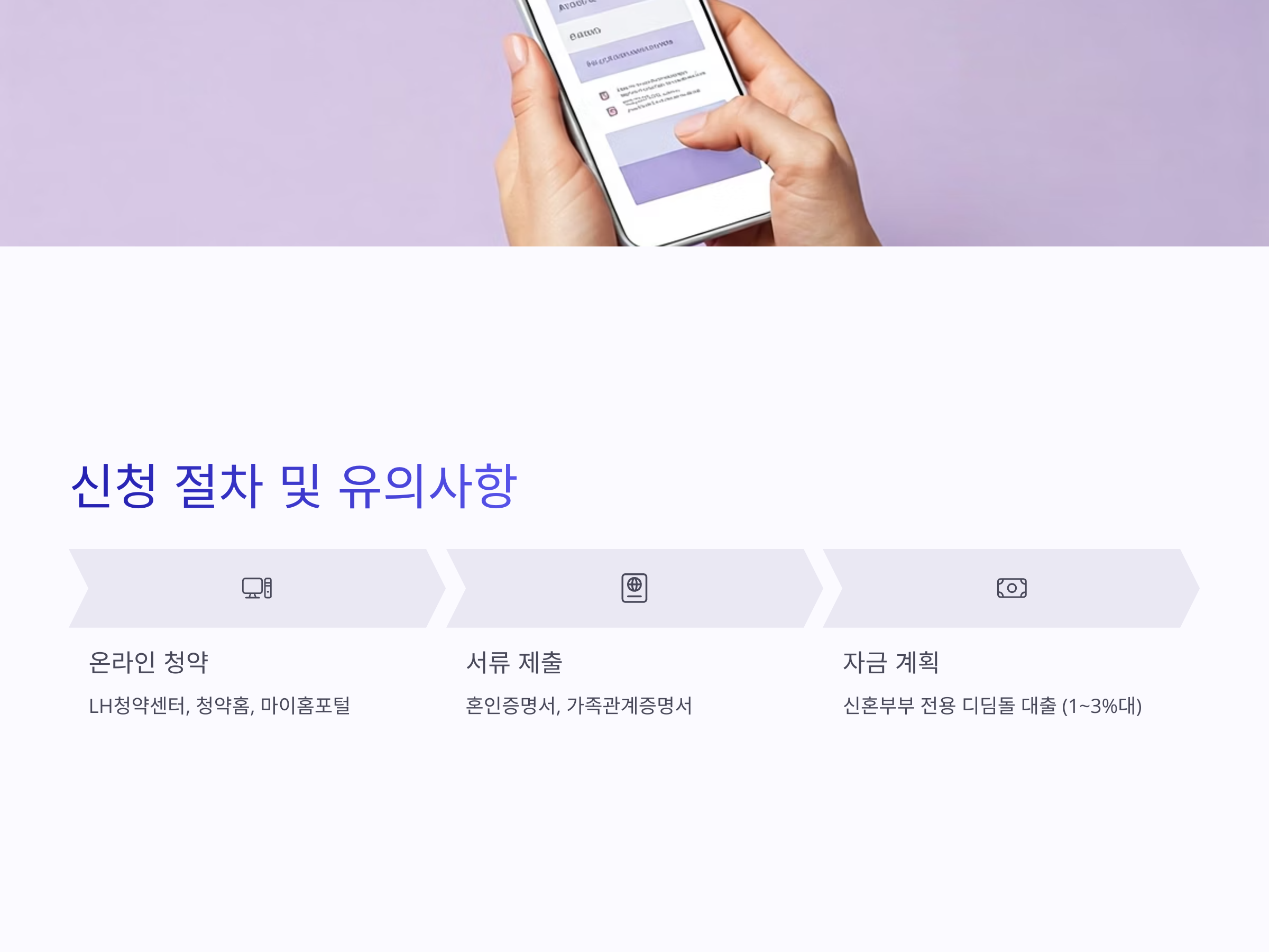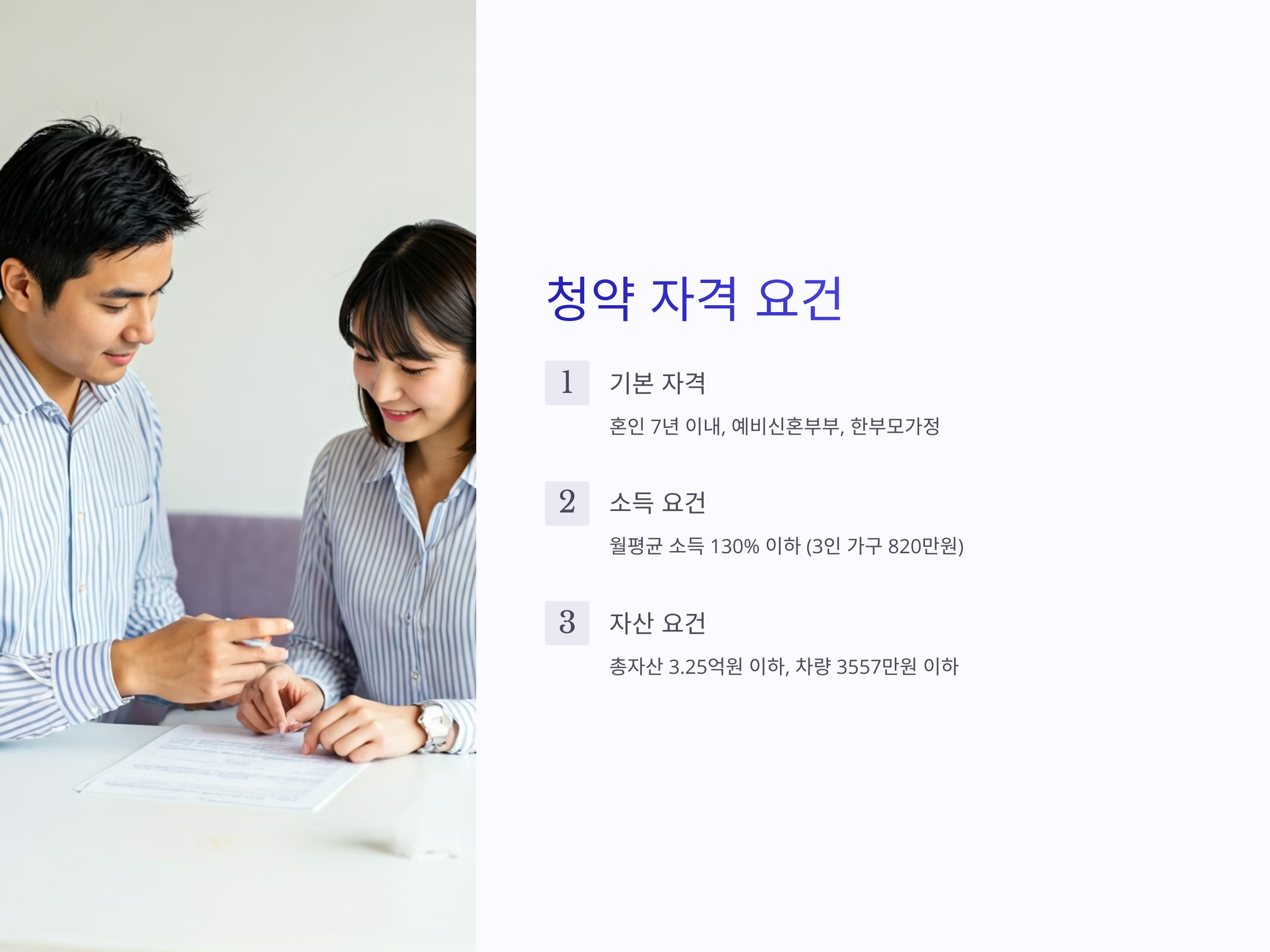 - 제출서류: 혼인증명서, 가족관계증명서, 청약통장 내역 등