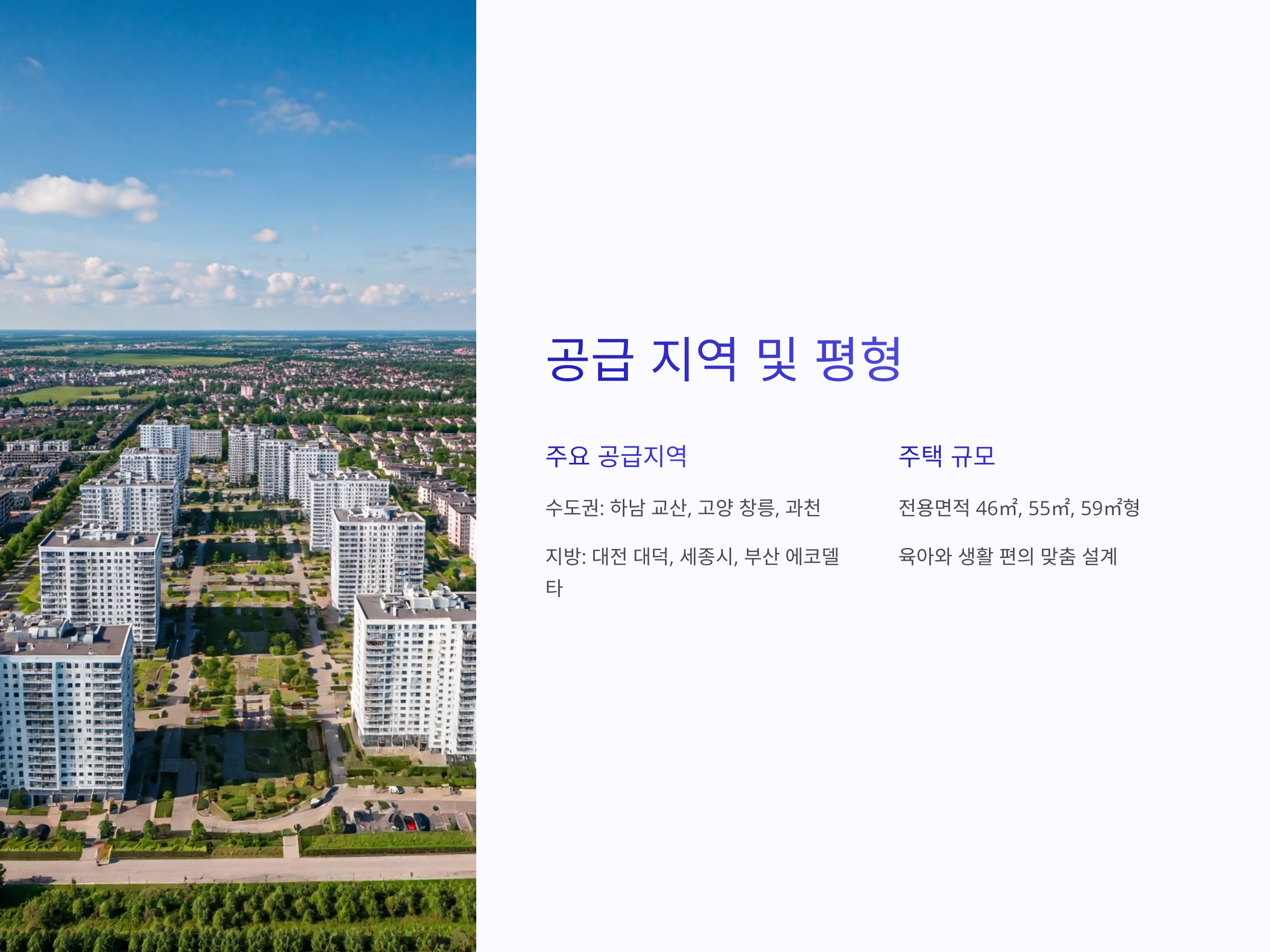 공급지역은 수도권 중심으로, 수도권 외 광역시와 중소도시까지 확대됩니다. 대표 공급 예정지는 다음과 같습니다: