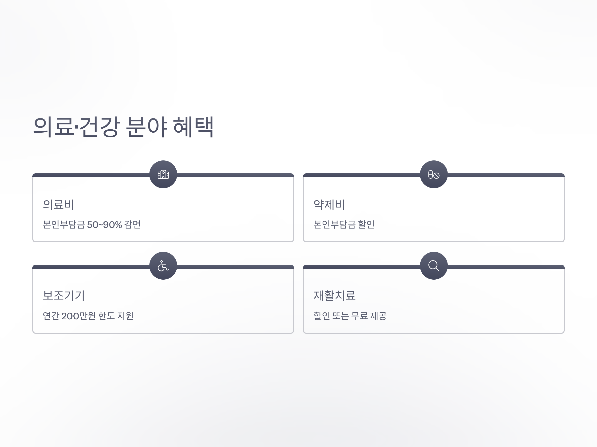 3. 의료·건강 분야 혜택: 진료비, 약제비, 재활치료, 보조기기까지