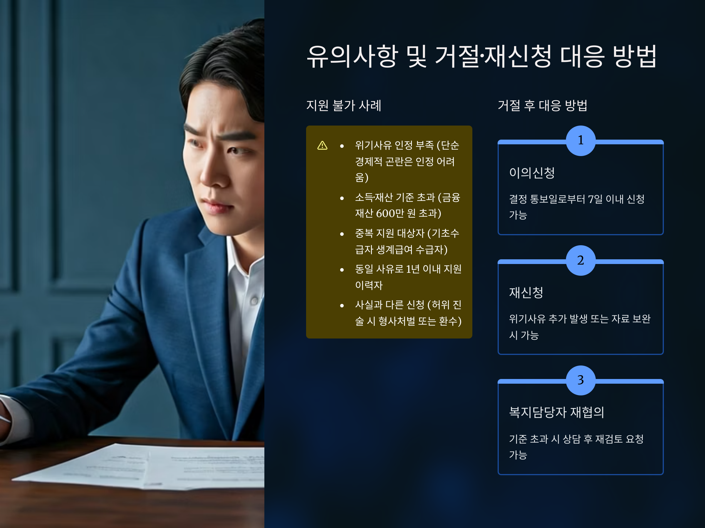 - 재신청 가능: 위기사유 추가 발생 또는 자료 보완 시