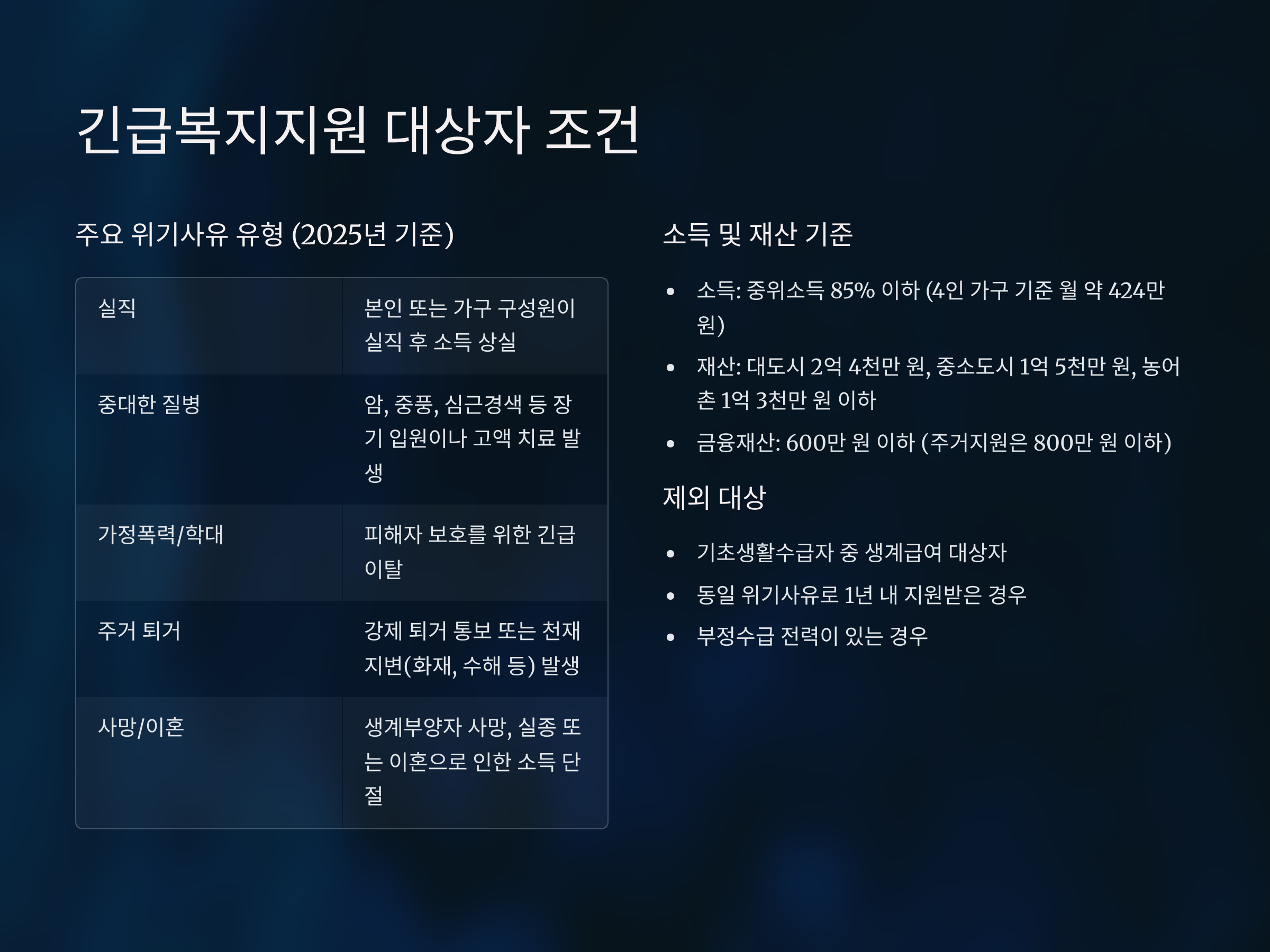 2. 긴급복지지원 대상자 조건 및 위기사유