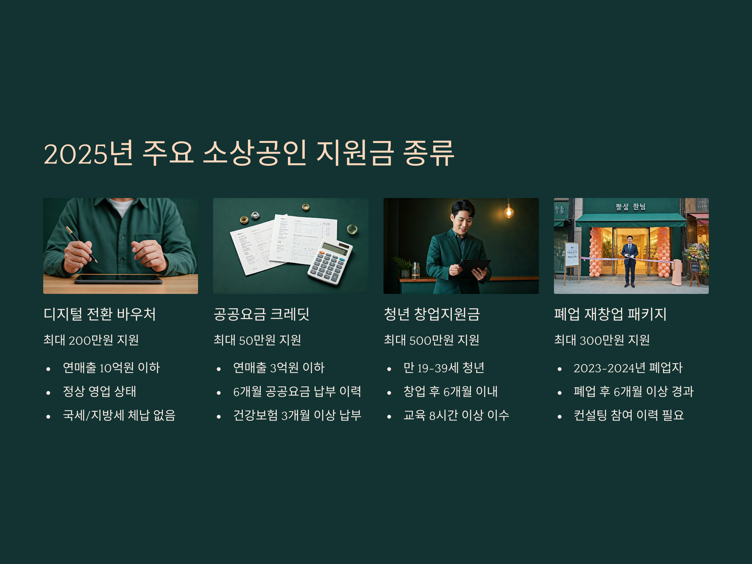 2025년 주요 소상공인 지원금 종류별 조건 상세 정리