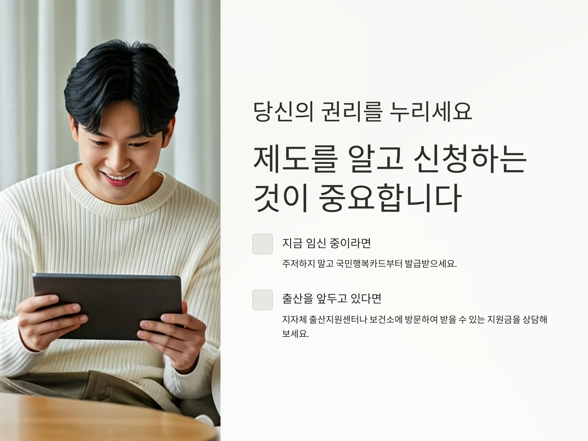 정부는 이외에도 다자녀 가정, 미혼모, 장애인 산모, 청소년 산모 등을 위한 별도 지원군을 운영하고 있으며, 복지로 또는 보건소를 통해 확인 가능합니다.