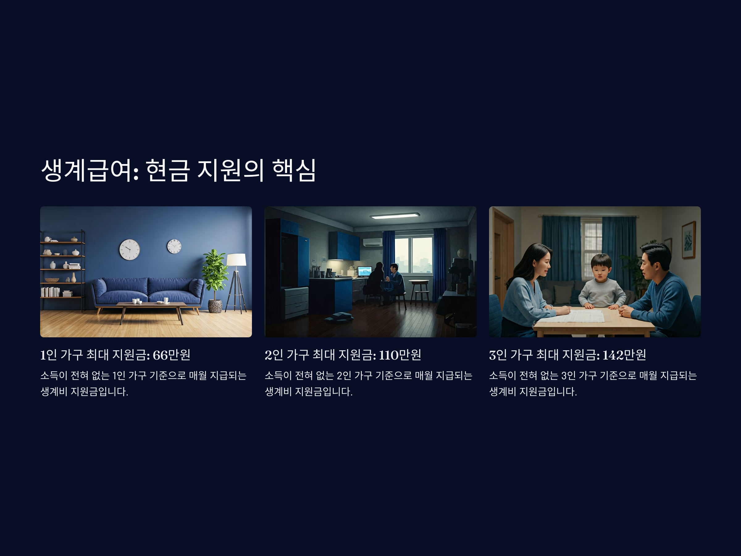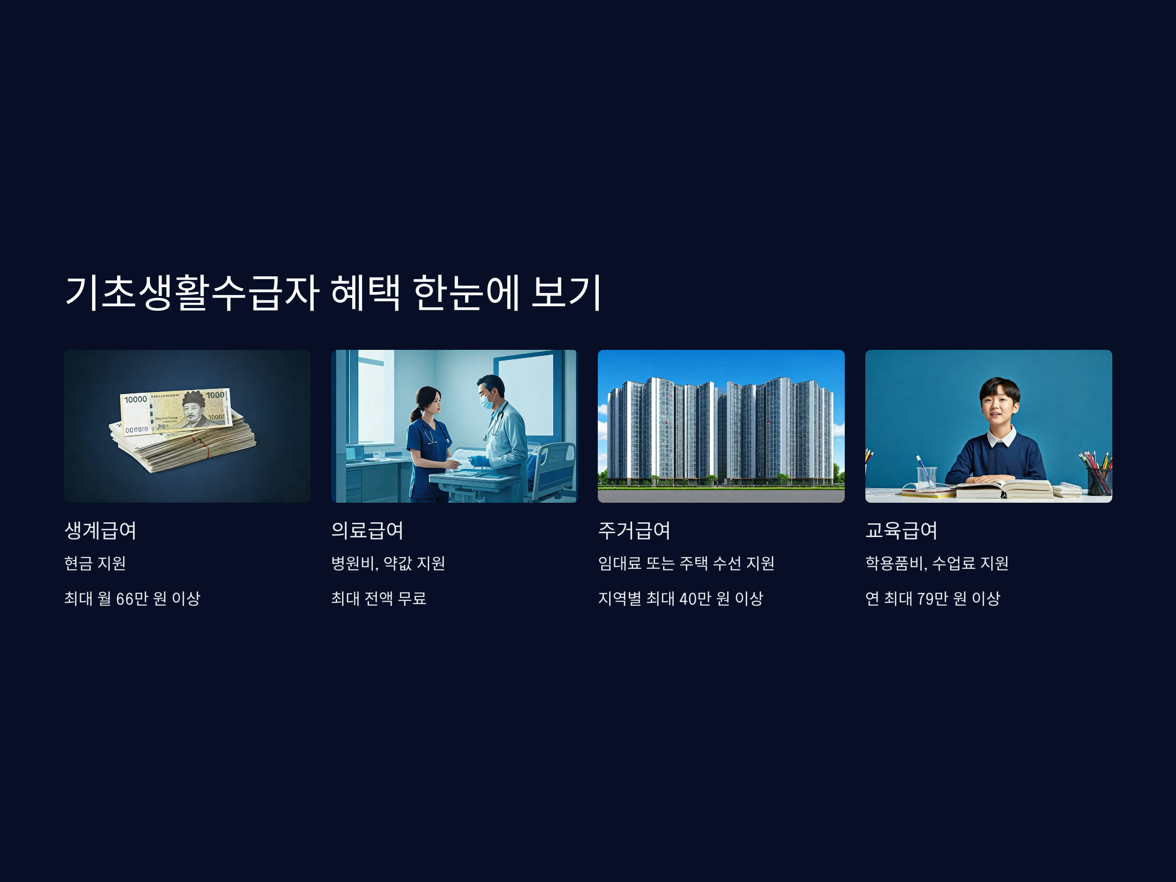 | 생계급여 | 현금 지원 | 최대 월 66만 원 이상 |