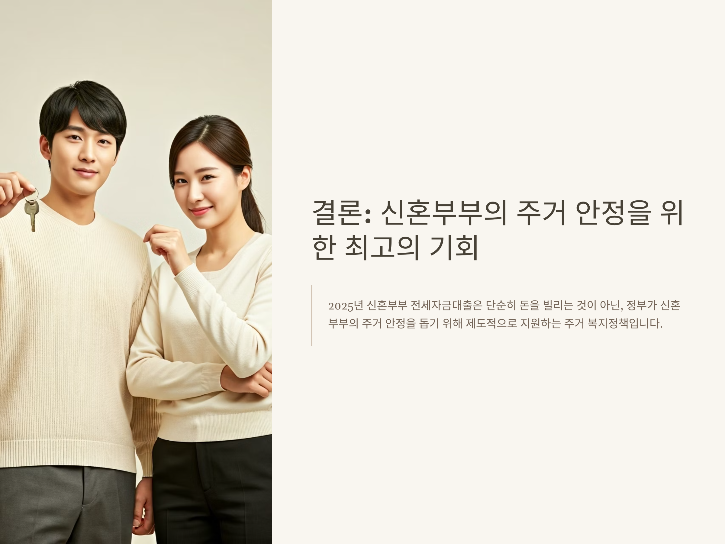 결론: 신혼부부라면 반드시 확인해야 할 2025년 최고의 전세대출 제도
