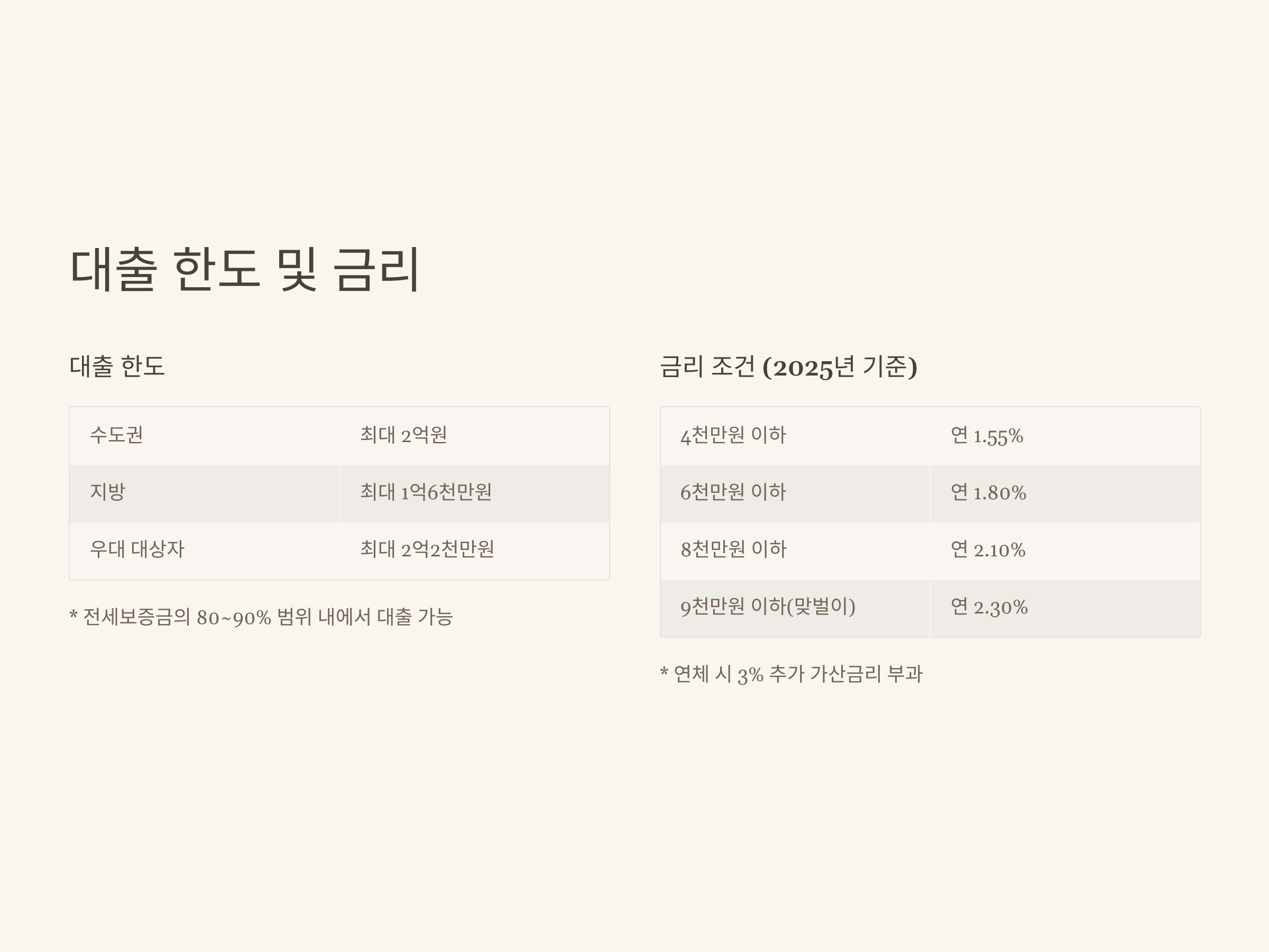 3. 대출 한도 및 금리 – 소득별 차등 적용과 2025년 금리 조건