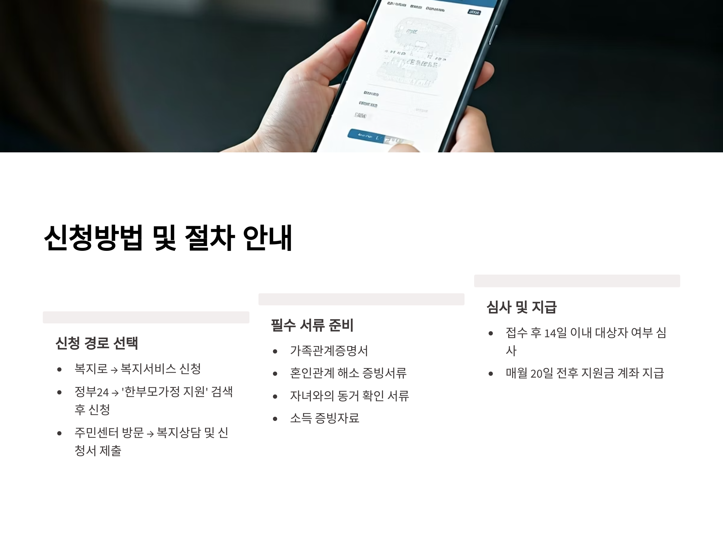 - 신청 편의 개선: 복지로·정부 24 통합신청, 구비서류 간소화