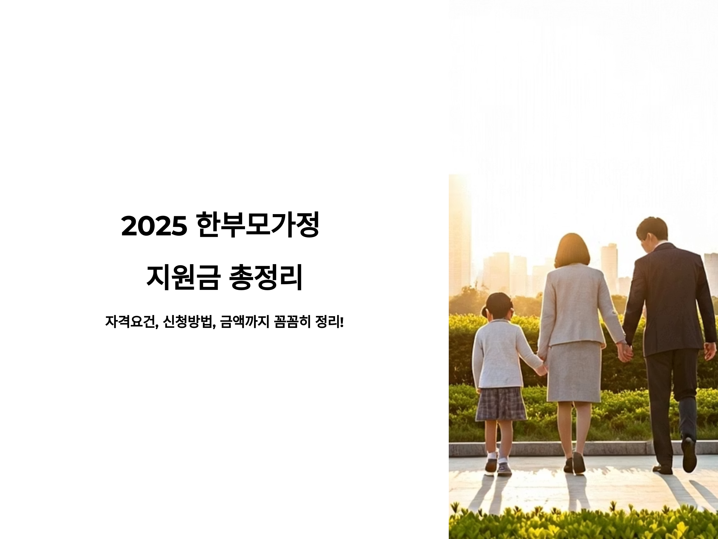 2025년 대한민국 정부는 저출산 문제와 가족 다양성 확대에 대응하기 위해 한부모가정에 대한 경제적·복지적 지원을 강화하고 있습니다. 특히 **자녀 양육을 혼자 책임지는 부모(모자·부자가정 포함)**에 대해 지원금, 복지서비스, 주거지원, 교육비 감면 등 다양한 제도적 뒷받침이 마련되어 있습니다.